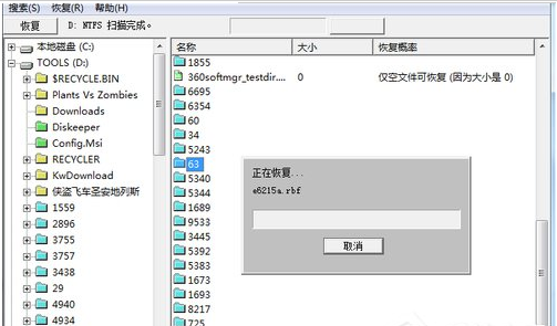 7、确定了保存路径之后,软件即开始恢复这些你选定的文件。如果需要恢复的文件过多,那么这也是一个十分耗费时间的过程,需要耐心等待恢复完成。