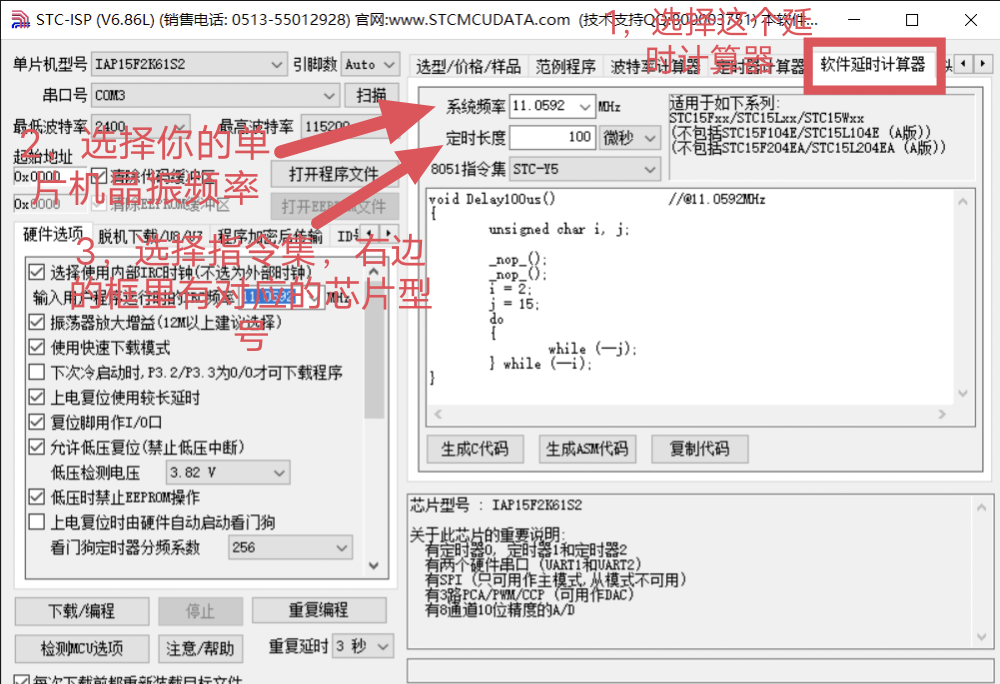 还有另一种方法写延时函数,而且所延迟的时间更加精确,使用单片机的烧入程序STC-ISP。
