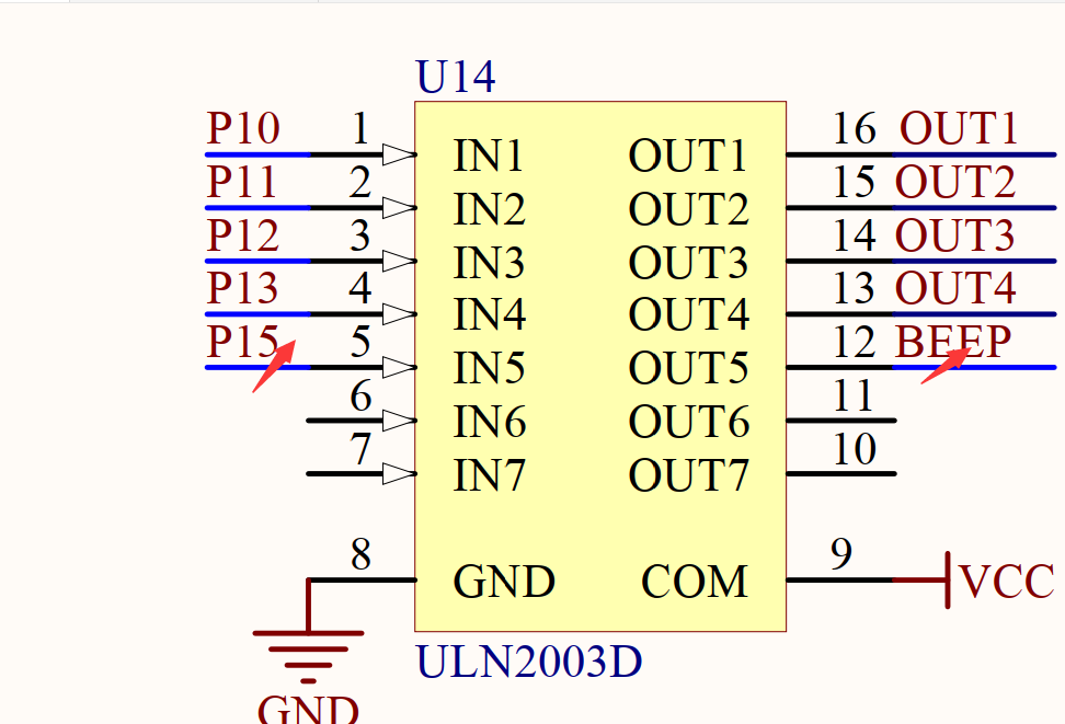 由于51单片机的IO口的驱动能力比较弱,所以用ULN2003D芯片进行驱动根据芯片原理图