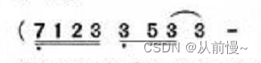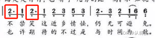 还有,细心的读者可能会发现,这幅图后面的两个音——“6”,下面带了两个点,这就是我上面所说的它的音调低了两轮。