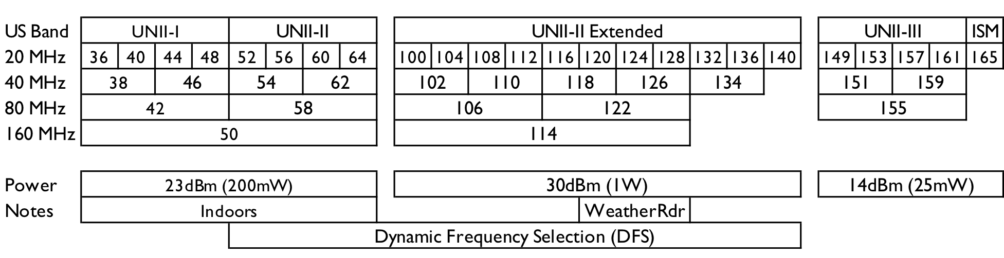 36, 40, 44, 48, 52, 56, 60, 64, 100, 104, 108, 112, 116, 120, 124, 128, 132, 136, 140, 149, 153, 157, 161, 165