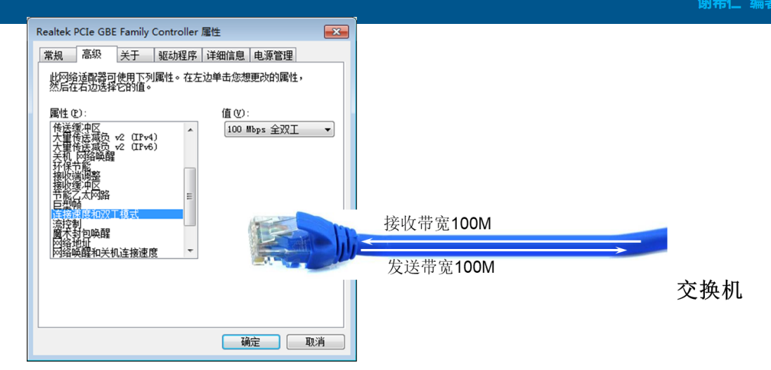 网卡的带宽是100Mbit/s代表的是指单方向通讯100M,发送数据是100M接收数据也是100M。