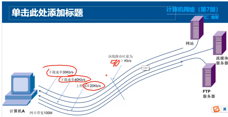 - 吞吐量受网络的带宽或网络的额定速率的限制。