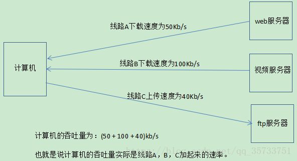 一般吞吐量用于对某个网络的一种测量,通过测量我们可以知道实际上有多少数据能够通过该网络,显然,网络的带宽的大小或网络允许的最高速率限制会影响吞吐量。比如:对于一个 1Gbit/s 的以太网,其额定速率(即最高速率)是 1Gbit/s,也就是说 1Gbit/s 是该以太网的吞吐量的最高值。因此,对于 1Gbit/s 的以太网,其实际的吞吐量可能也只有 100Mbit/s,甚至更低,远没有达到额定速率。