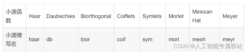 其中主要的小波基函数有如下的函数