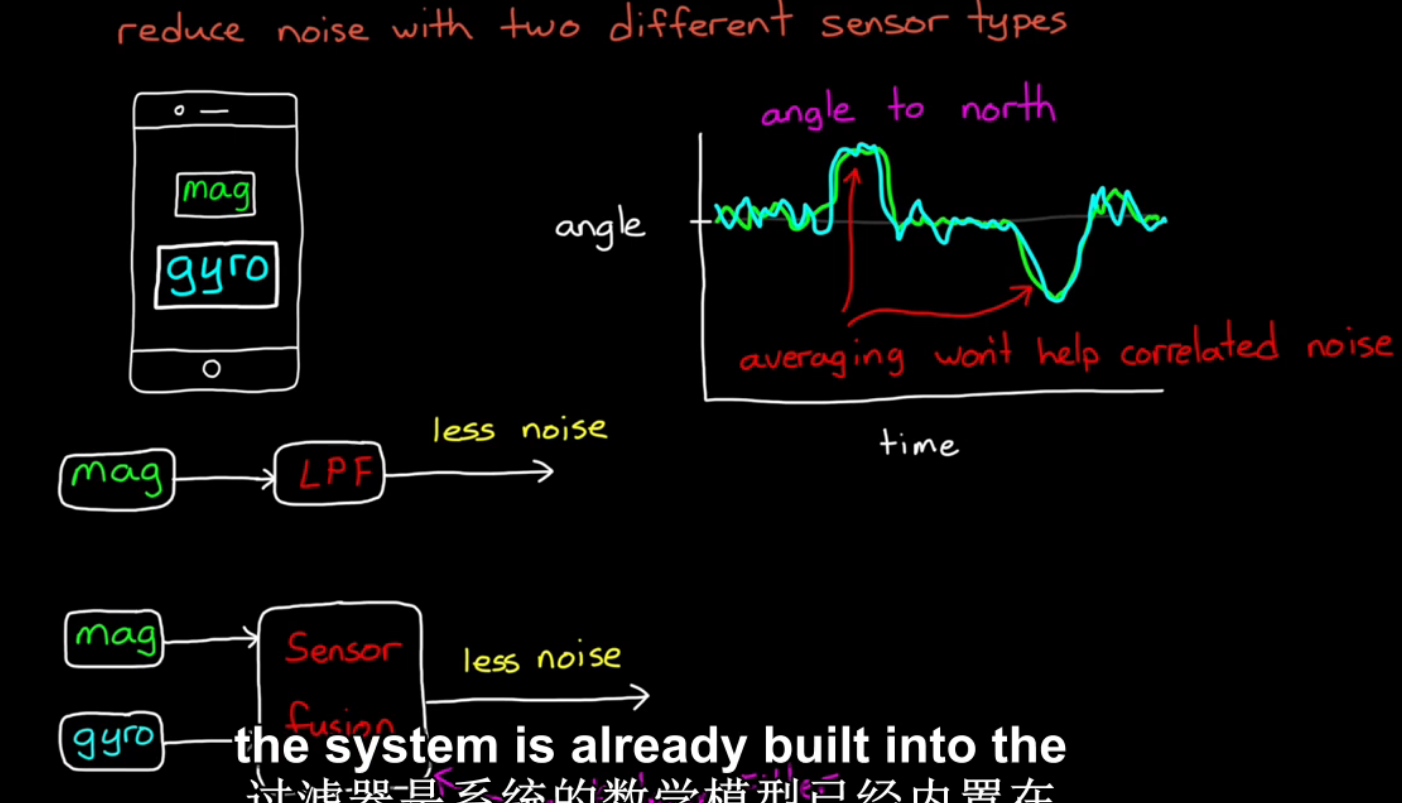 例2:用两种不同的传感器,减少噪声。手机中两种用于测量方向的功能,磁体mag和带有角速度传感器陀螺仪的磁力计gyro。