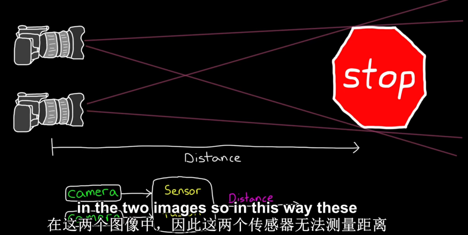 例5:相机测距。一个相机无法测距,远处的大物体和近处的小物体有相同的像素。