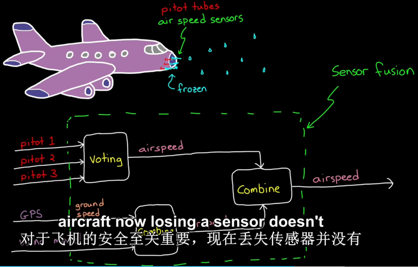 例3:测量飞机速度。飞机上有两种测量速度的传感器方案,多个皮托管和GPS大气风速模型估算空速。当一个皮托管不工作时依靠其他皮托管,所有皮托管都失效时,依靠GPS测速。