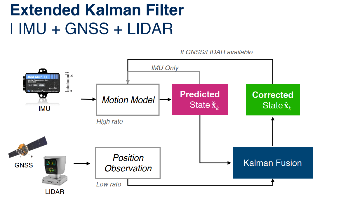 IMU和GPS的传感器融合算法使用EKF扩展卡尔曼滤波器。EKF适用于目标跟踪。