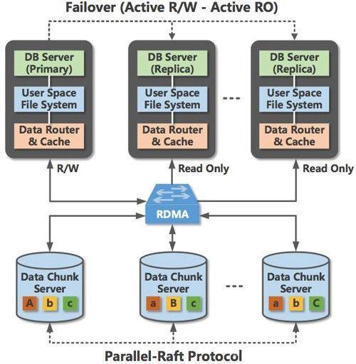 这类架构灵感来自于AWS 的Aurora,采用计算存储分离架构,利用软硬件结合提供高弹性(NVME,RDMA)、高性能、高可用的数据库服务。