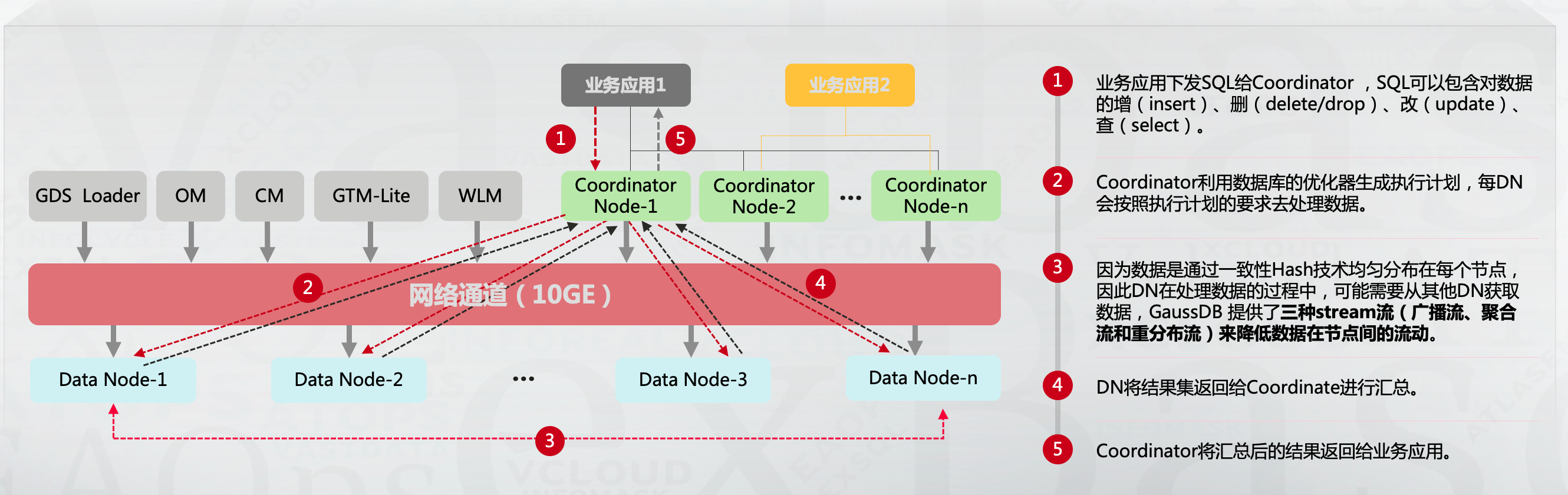 针对跨节点查询的SQL,GaussDB for openGauss与TDSQL-PostgreSQL分别提供了Stream流(广播流、聚合流和重分布流)和数据重分布(Data Redistribution)减少跨节点查询性能问题,以GaussDB for openGauss为例: