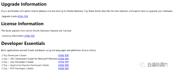 整个文档近400M,特别是Oracle Concepts这份文档,可以让从初学者到大师都受益匪浅。可以让Oracle DBA们理解Oracle的每个组件的技术思想,理解一些监控指标和等待事件的内在原理。