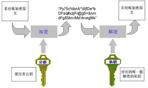 指加密和解密使用不同密钥的加密算法,也称为公私钥加密。假设两个用户要加密交换数据,双方交换公钥,使用时一方用对方的公钥加密,另一方即可用自己的私钥解密。