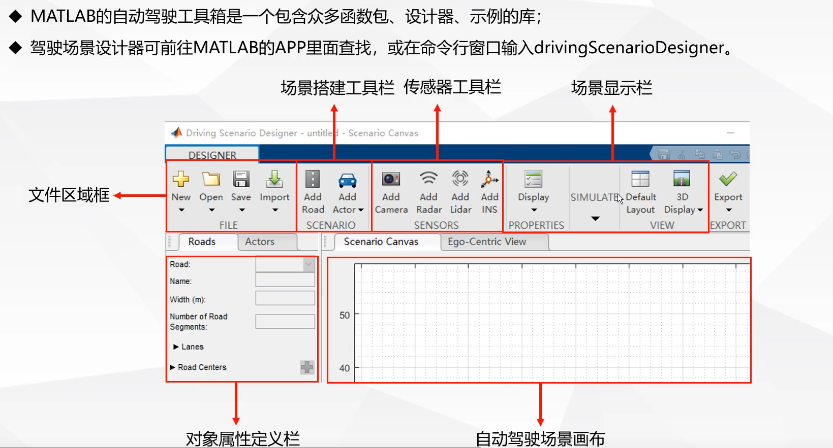 也可以命令行容器直接输入drivingScenarioDesigner,即打开了该工具箱
