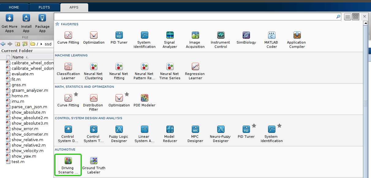 在MATLAB的APPS中选择AUTOMOTIVE下面的Driving Scenario Designer