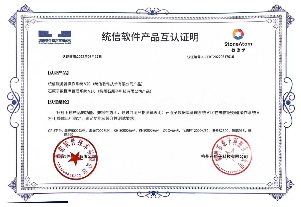 9月16日消息,杭州石原子科技旗下的StoneDB于近日完成了与统信软件旗下的统信服务器操作系统V20的国产化适配互认证。此前,StoneDB 还与华为鲲鹏 920 完成相互兼容性测试认证,取得 KUNPENG COMPATIBLE 证书。