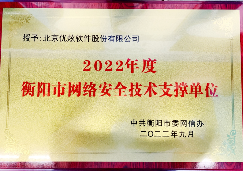 9月5日,“2022年国家网络安全宣传周衡阳专场”启动仪式举行,优炫软件获评“衡阳市网络安全技术支撑单位”称号。