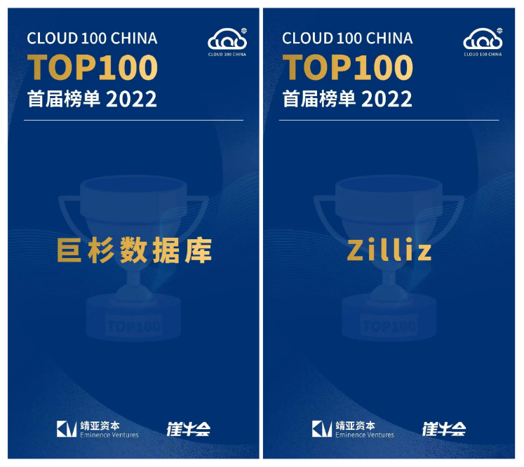 9月16日,靖亚资本和崔牛会联合共同发布「Cloud 100 China」榜单,巨杉数据库、Zilliz荣誉登榜。
