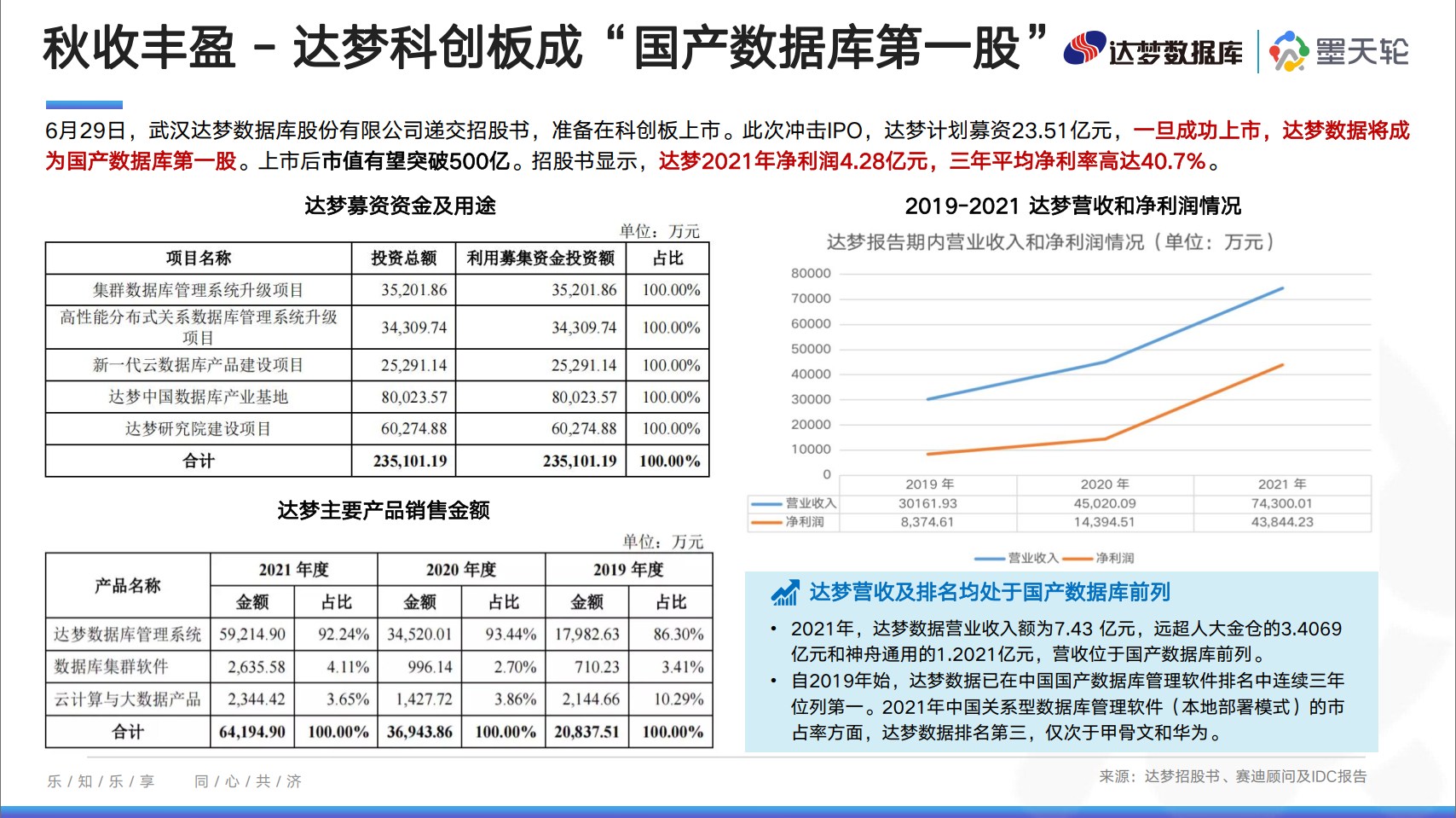 报告中对达梦此次冲击IPO以及星环科技的具体募资、营收等情况进行了介绍,同时对刚完成新一轮战略融资不久的拓数派(OpenPie)及其主要产品πCloud进行了具体介绍。(详细内容可以点击报告查看)