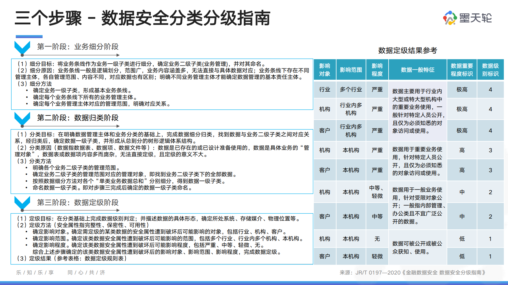 此外,由于当前各行各业的信息化建设呈现出业务种类繁多、数据复杂度高、数据多样性强的特点,采用规范的数据分类、分级方法,有助于行业机构厘清数据资产、确定数据重要性或敏感度。同时针对性地采取适当、合理的管理措施和安全防护措施,形成一套科学、规范的数据资产管理与保护机制能够在保证数据安全的基础上促进数据开放共享。报告中介绍了数据分类分级的意义、具体方法步骤,以及金融安全级别划分的通用规则,此处不做全部展示,大家可以下载报告查阅详情。