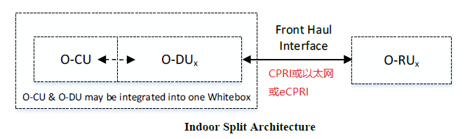 所谓分体/分离架构:是指O-RU和O-DU在物理上彼此分离,不在同一个物理实体中。