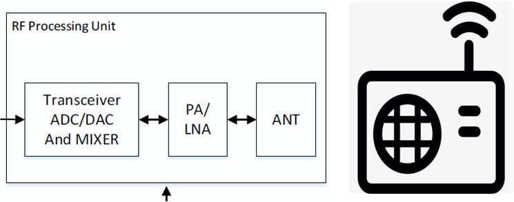 - Transceiver ADC/DAC: 数模转换器,用于把模拟信号转换成数字信号。