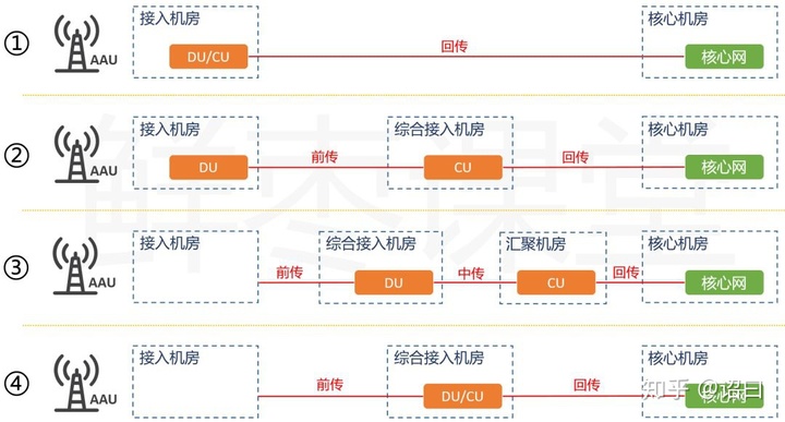 4.2、中传(DU↔CU)和回传(CU以上)。