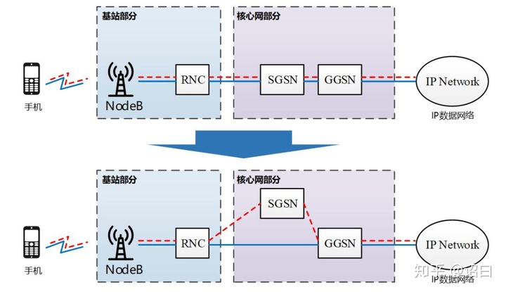 2G时代,用户面和控制面没有明显分开。3G时代,把两个面进行了分离。