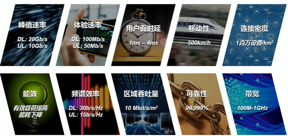 指标:下行峰值速率 > 20Gbit/s,上行峰值速率 > 10Gbit/s