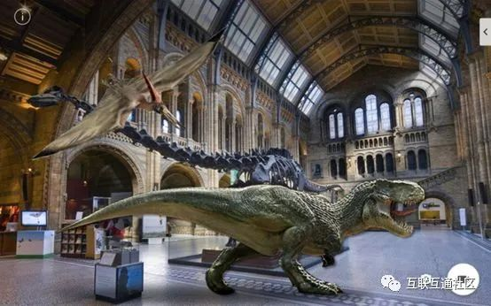 AR可用于提升博物馆或其他景点的体验,考虑一下这个场景,一个游客来到博物馆,美术馆,城市纪念碑,音乐或体育赛事现场,将他们的移动设备移向特定的兴趣点,并激活与之相关的应用程序(比如博物馆应用程序)。摄像头捕获兴趣点,应用程序随之显示与访客正在观看的内容有关的其他虚拟增强信息。比如当你靠近一只恐龙骨架时,一只栩栩如生的恐龙会出现并且可能咆哮。