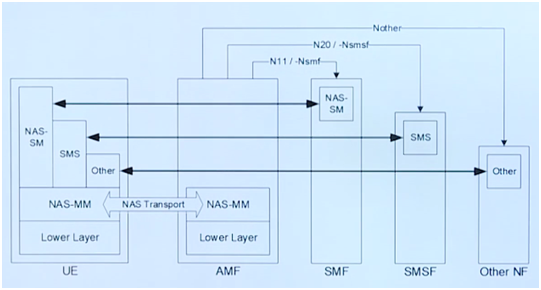 注:会话管理的NAS消息,承载于移动管理消息之上,其他的会话管理消息同样需要通过AMF来转发和透传。