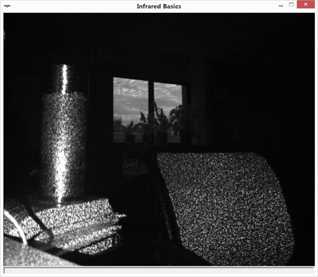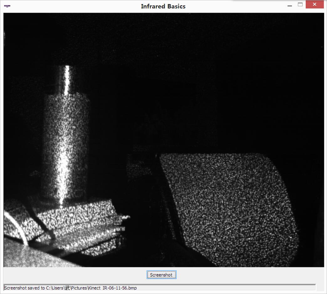 感觉还是比较靠谱,因此就跟着他来了,首先的问题是红外图像(Infrared Image)的获取,官方的SDK中有一个 InfraredBasics-D2D的例子,但是没有保存按钮就只能看看红外的效果。如下图所示