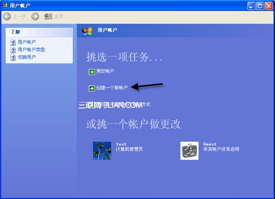 那么要解决我家的矛盾,只要为每个家庭成员创建自己的帐户就可以了。要注意,在windows xp中,微软为了简化帐户和权限的设置,使用了各种简易方法,这样虽然使得设置更加简单,但是可设置的选项也少了很多,只能实现最简单的目标。如果想要进行更复杂的设置还需要使用windows 2000中类似的传统帐户以及权限设置方法。幸好这个在windows xp中也可以使用,我们会在后面详细说明。