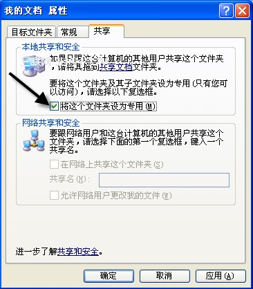 注意,将文件夹设为专用这个功能仅在简单文件共享开启的情况下有效,禁用简单文件共享后将只能使用传统方式设置该文件夹的访问权限。具体方法后面会详细说明。另外,不是所有的文件夹都可以直接设置为专用的,只有出于用户配置文件中的文件夹(也就是默认情况下的“我的文档”文件夹)才可以被设置为专用,您无法选择“将这个文件夹设为专用”选项:同时,系统盘使用了NTFS文件系统也是能够设置文件夹为专用的一个大前提。