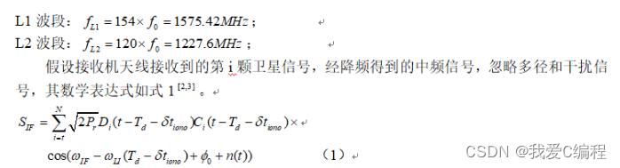 GPS卫星发送的信号一般由3个分量组成:载波、伪码和导航电文,其中伪码和导航电文采用BPSK技术去调制载波。GPS使用的两个L波段两种载频: