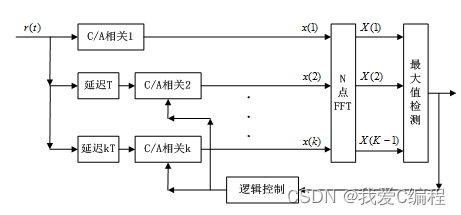 这里分段数目为K,那么每个相关器的相关时间为TCA/K。每个相关器处理的C/A码长度为,然后再对处理后的数据进行FFT变换。由于每个FFT对应的点数仅仅为原来的,故其硬件资源较直接的并行FFT算法要节约。