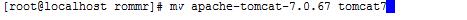 3.重命名:mv apache-tomcat-7.0.67 tomcat7