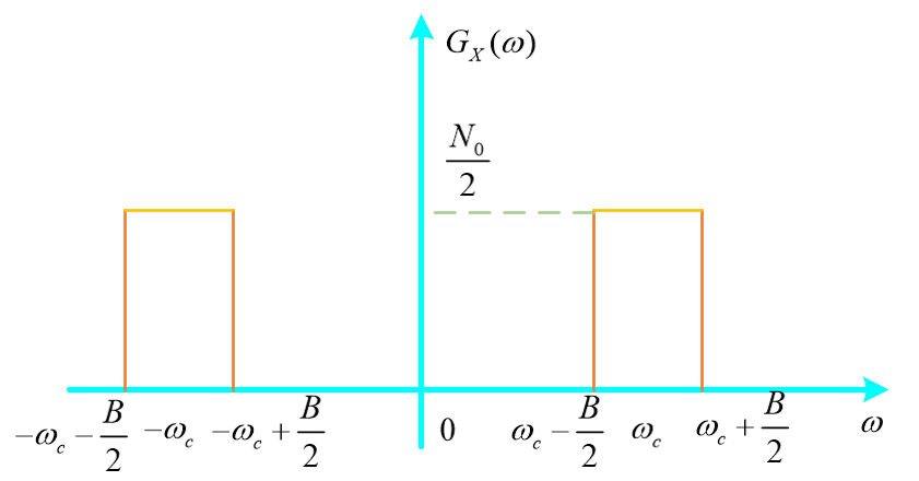 G_X(omega)=left{ begin{array}{rcl} &frac{N_0}{2}quad&omega_c-frac{B}{2}leq|omega|leqomega_c+frac{B}{2}\ &0quad &others end{array} right.