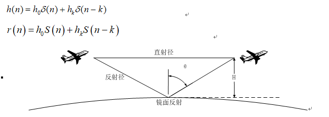 直射路径上的信号功率只与通信距离有关,并随距离增大而相应衰减。空空信道中的其他通信路径一般是由于地面、海面以及山体的反射而造成的。多径的功率小于主径,但当无线电波在海面上产生镜面反射时,多径的功率可以接近于直射路径的功率。通过实测可知,在空空通信时,第二径的功率有90%以上的概率在主径功率的0.5至0.96倍之间,其他多径的功率则较小。