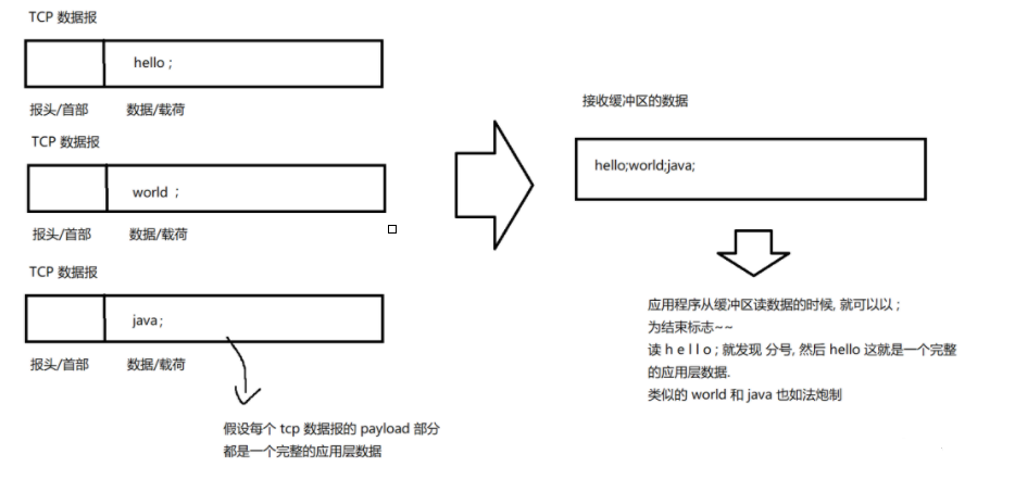 当应用程序从接收缓冲区读数据的时候,就不知道从 那到那是一个完整的应用层的数据报了,应用程序此时只能看到接收缓冲区里面一个一个的字节,而无法区分当前接收缓冲区里面有多少个应用数据报,以及从哪到哪是一个完整的应用层数据报