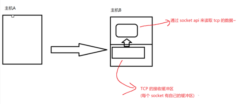 主机A发送的数据到了主机B的接收缓冲区,此时主机A就是生产者:主机B的应用程序,通过 socket api来读取数据.被socket api读到的数据就从缓冲区删掉.应用程序就是消费者.接受缓冲区就是交易场所.