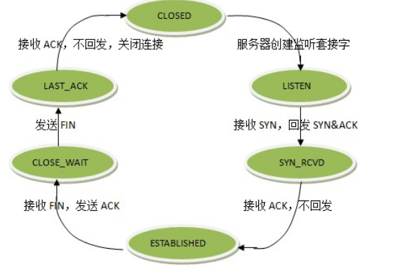 被动关闭的连接方应对非常简单,它在回复 ACK 后就进入了 CLOSE_WAIT 状态,等待进程调用 close 函数关闭连接。因此,出现大量 CLOSE_WAIT 状态的连接时,应当从应用程序中找问题。
