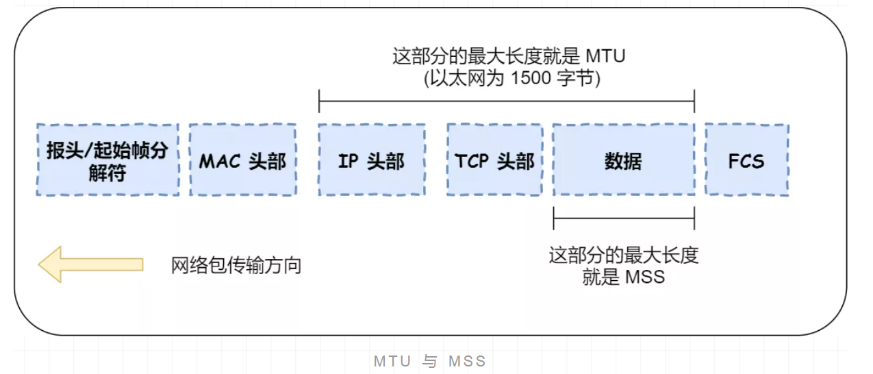 MSS:除去IP和TCP头部之后,一个网络包所能容纳的TCP数据的最大长度;