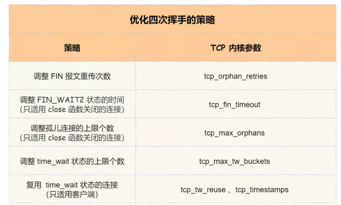 如果这是 close 函数关闭的连接,那么它就是孤儿连接。如果 tcp_fin_timeout 秒内没有收到对方的 FIN 报文,连接就直接关闭。同时,为了应对孤儿连接占用太多的资源,tcp_max_orphans 定义了最大孤儿连接的数量,超过时连接就会直接释放。