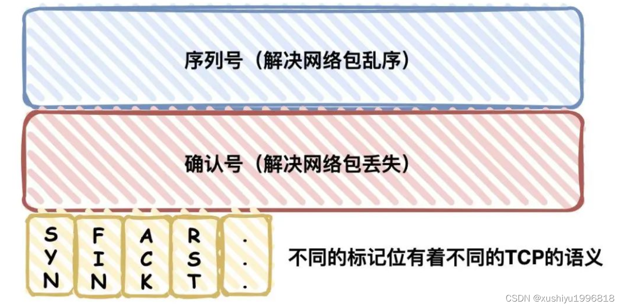 序列号:在初次建立连接的时候,客户端和服务端都会为「本次的连接」随机初始化一个序列号。(纵观整个TCP流程中,序列号可以用来解决网络包乱序的问题)