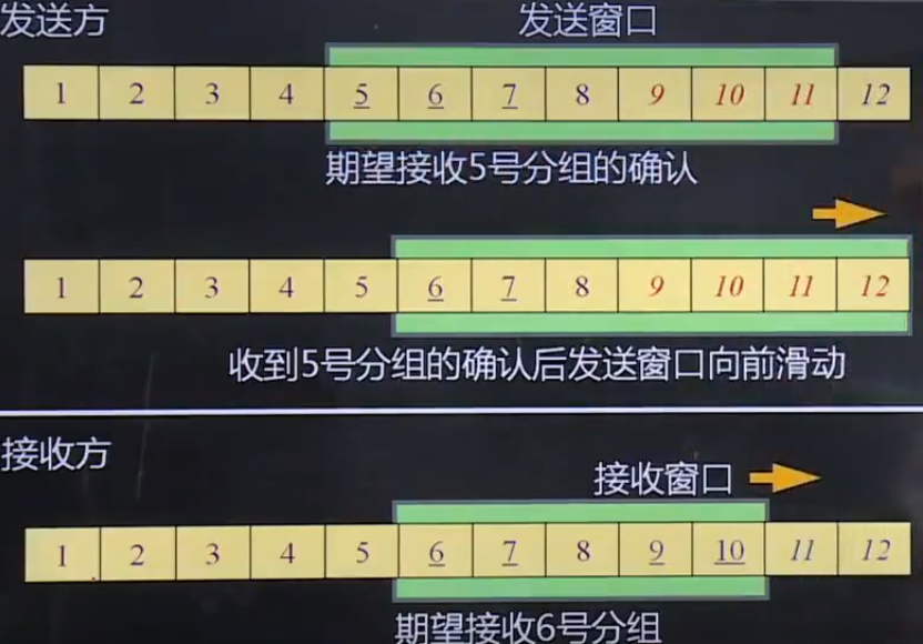 3.发送方如果收到ACK,则继续发送后续报文段,否则重发刚刚发送的报文段(继续发送,重发)