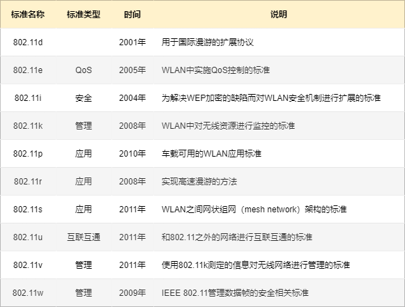以上都是 802.11 传输标准,还有一些其它类型的标准。