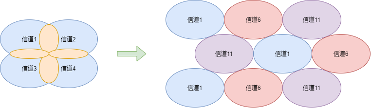 WLAN 标准中,使用 2.4GHz 和 5GHz 频带,各个频带都有多条信道。在设置 AP 时,为了防止干扰,需要把相同信道的 AP 隔离开来。
