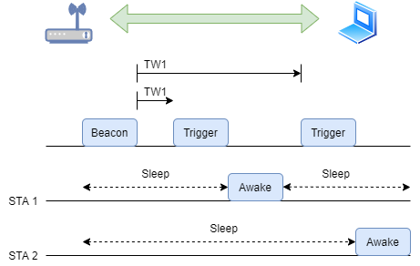 TWT机制:WiFi 6 加入了 TWT 机制( Target Wake Time )。TWT 机制是专门针对类似智能家居这样的低速设备而设置的。例如配置 2.4GHz 频段、20MHz 频带的 WiFi 终端。AP 会自动生成一个数据交换用的唤醒时间,在网络数据传输不高的时段,依次唤醒这些低速设备进行数据交换,比如下载最新数据库、上传生成数据等操作。这样慢速设备不再长时间占用带宽,可以有效避免网络拥堵。这也是一种优化网络带宽利用率的技术手段。