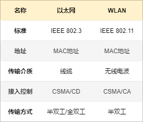 以太网用 CSMA/CD 进行传输控制,而 IEEE 802.11 的 WLAN 采用的是 CSMA/CA 。